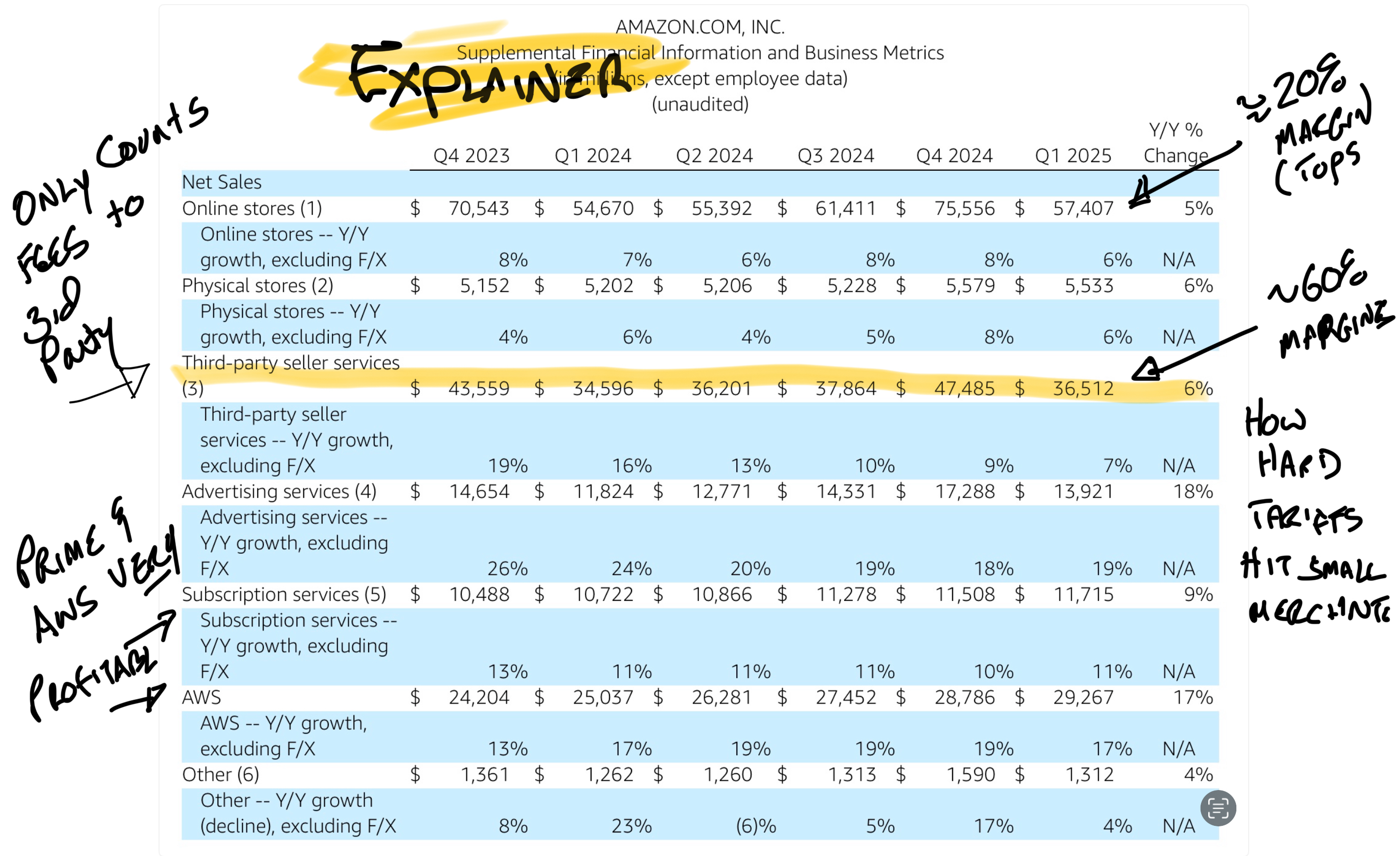 I talk a lot about Amazon being more insulated from Tariff noise than other major retailers. Part of that is AWS but the other reason is the unbelievable amount of money Amazon makes from selling services to other retailers. Third-party services involve the processing, shipping, and web-hosting of merchants who sell on Amazon, and it's a growth monster for Amazon, both on the top and bottom line.
