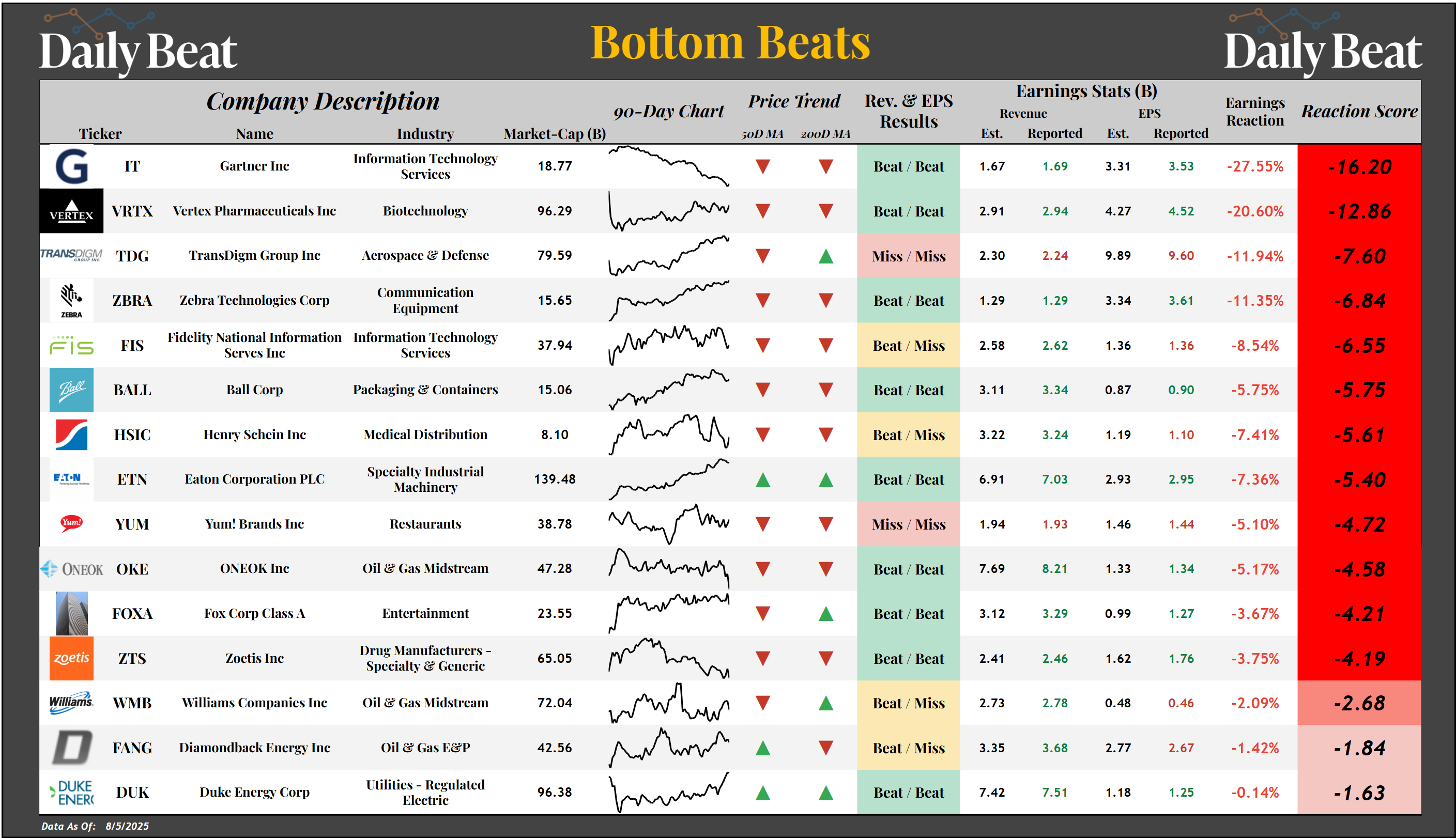 The $96B Biopharma company, Vertex Pharmaceuticals $VRTX, had a -12.86 reaction score after reporting a double beat. This was the 2nd-worst earnings reaction in the stock's history.