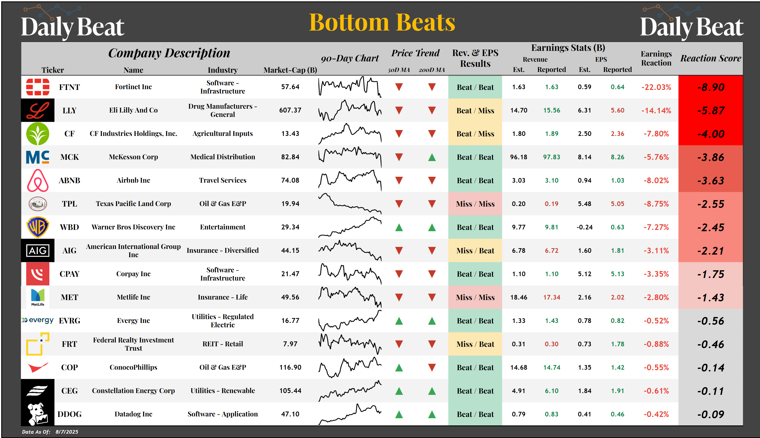 The $57B software provider, Fortinet $FTNT, had a -8.90 reaction score after reporting a double beat. This was the worst earnings reaction in 8 quarters.