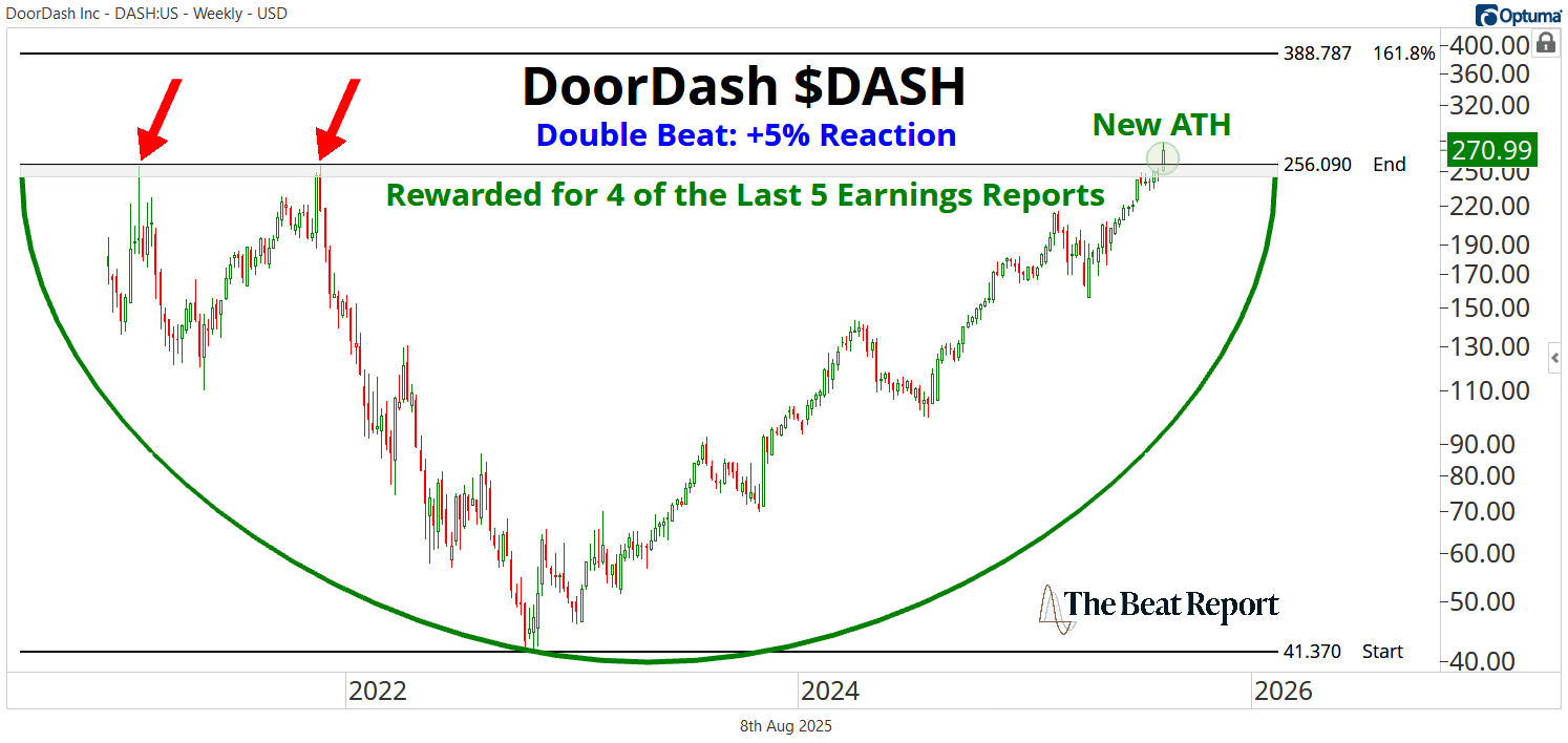 DASH has been rewarded for 4 of its last 5 earnings reports πŸ”₯