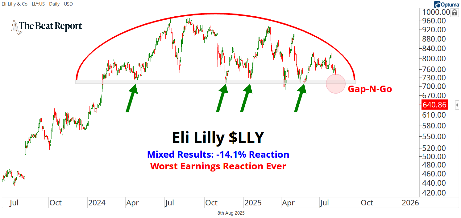 The $607B GLP-1 giant, Eli Lilly $LLY, had a -5.87 reaction score after reporting mixed results. This was the worst earnings reaction ever.