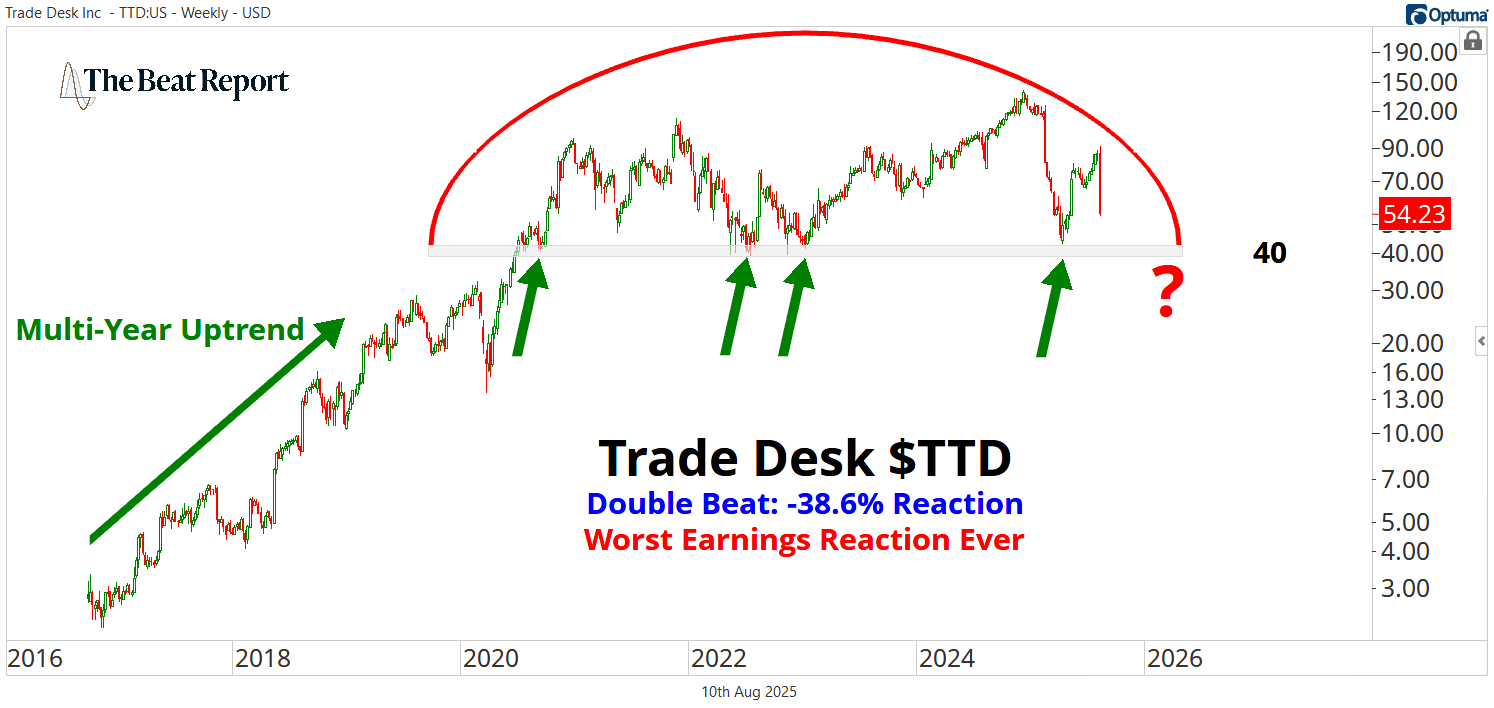 The $26B advertising agency stock, Trade Desk $TTD, had a nasty -11.10 reaction score after reporting a double beat. This was the worst earnings reaction in the stock's history.