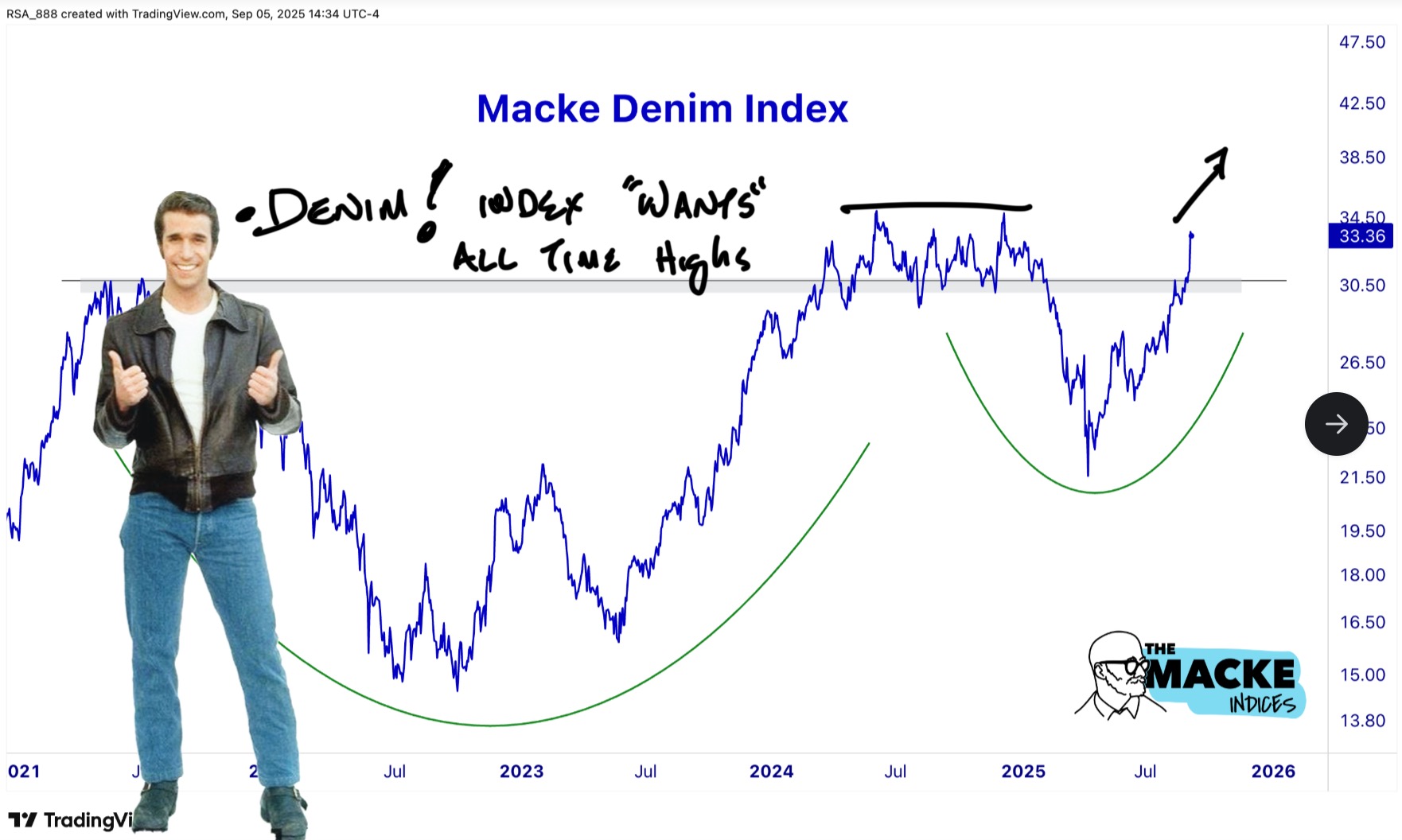 Denim is doing well, and the Macke Denim Index could still go higher. I’m still positive on jeans, but I’m staying away from Lulu until there are clear signs of a turnaround in North America. Margins are shrinking, sales are getting tougher, and discounts are more common. Wall Street isn’t sure how to value Lulu now that its growth has slowed.