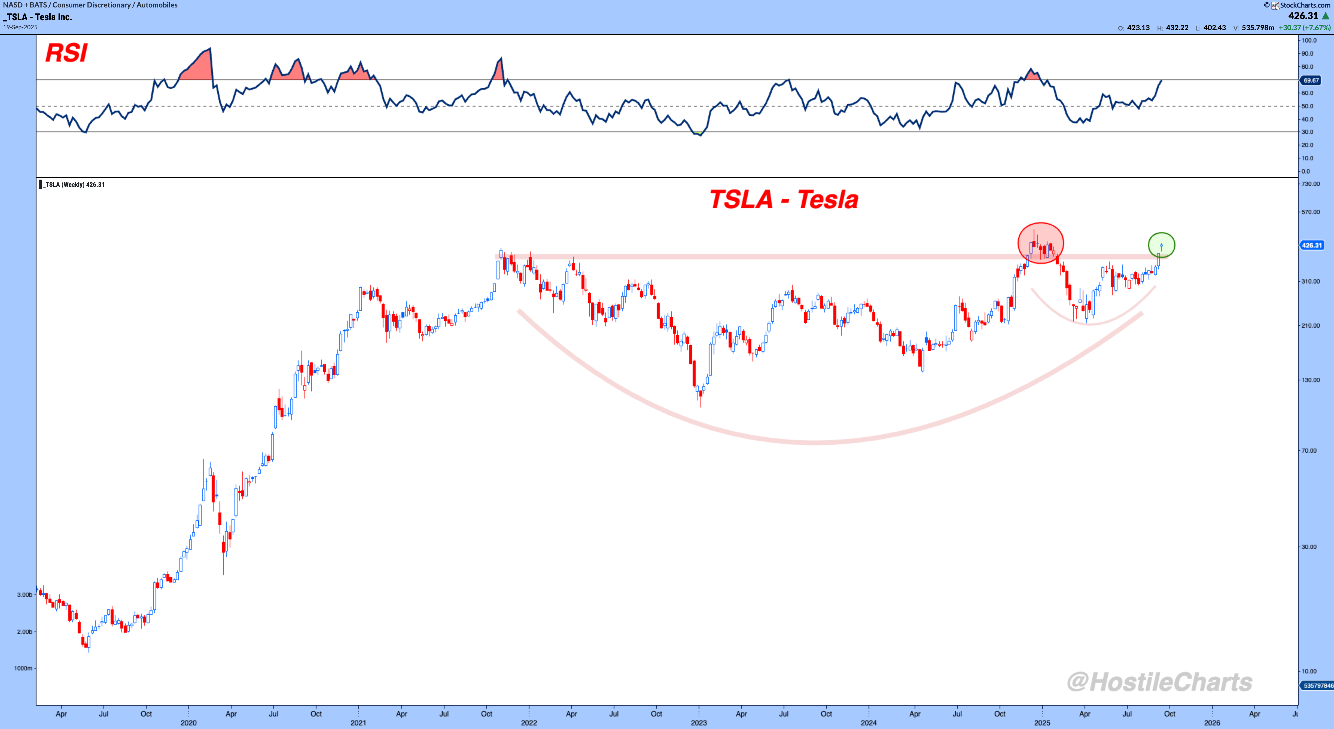 Thompson's Two Cents The Sunday Stalk List | Ep. 17 Same Old Same Old By Larry Thompson September 20, 2025 Sunday Stalk List | Ep 17Welcome back to The Sunday Stalk List.Every weekend, I review hundreds if not thousands of charts across U.S. indices, global markets, breadth, sentiment, and intermarket relationships.And now I’m opening up my stalk list.The names that stood out the most from my review.This week’s theme: Same Old Same OldAfter ripping through the charts this weekend, more things remain the same.It’s a Bull Market with offense on the field.Opportunities are where the focus should be.Think about it, have you ever seen a football team, while on offense, sub in two defenders “just in case” they throw a pick and need tacklers ready? Of course not.So why do so many investors play it that way?Yes, some areas look extended, but plenty of others are setting up for their next leg higher.Offense is on the field… ACT LIKE IT.Let’s get into it. $RSP - S&P 500 Equal Weight A solid week from Momentum has people calling the market extended. Truth is, it depends where you look.Equal Weight S&P says this breakout is just getting started. $RKLB - Rocket Lab Shared it last week, still stalking it. Didn’t break higher yet, but that may change quickly.A breakout here sets up a strong run. I’m long-biased above $60. $UBER - Uber Months of consolidation look ready to resolve.A break above $100 opens the door higher. I’m long-biased, adding as long as it holds above ~$90. $XLI - Industrials Not every area is extended. Industrials look coiled.I like it long above $150 with some solid setups inside the sector and potential rotation tailwind. $META - Meta Trillion-dollar names with clean charts. Hard to be bearish here.$750 is my line in the sand. I like adding right here, right now. $TSLA - Tesla - Zoom Out It's crazy when you zoom out how silly all of this Bubble Talk seems.A chart like Tesla has had a nice move short term, but if could just be getting started when you look longer term. Against $400 it seems dumb not to be long. My Two Cents The market keeps humming.Many obsess over “new” developments, but it’s really the same old story.It’s a Bull Market. Offense scores the points.Be opportunistic.See you next week. My Weekly Show - Thompson’s Two CentsThis week was Episode 2 of ALL Gas No Brakes.20 Stock Setups In 20 Minutes🚀 Throw it on 1.5x speed and let it rip.👍 Give it a like. It’s the easiest way to show me some love. More from Thompson's Two Cents Larry Thompson The Sunday Stalk List | Ep. 21 A "SHOW ME" Market November 2, 2025 Larry Thompson Bitcoin Looks Spooky The 4 Warning Signs October 30, 2025 Larry Thompson The Rule vs. The Exception A Bull Market Chart October 28, 2025 Sign Up TodayGet expert market insights delivered straight to your inbox. You must have JavaScript enabled to use this form. Email Address