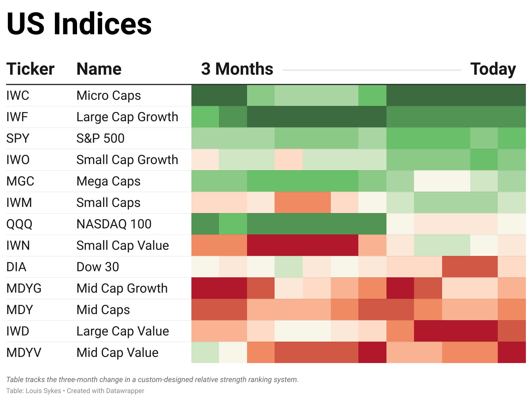On our table, the Russell 2000 Small Cap ETF $IWM has finally completed its transition to green, while Micro Caps $IWC are the strongest ETF on today's list - who would've thought!
