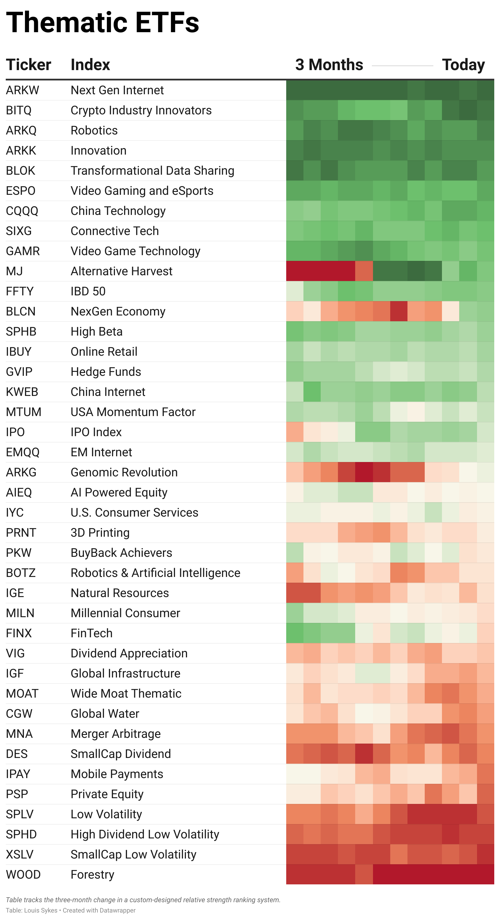 Across our thematic universe, the speculative end is really starting to take off. China, speculative crypto, and crypto itself are all topping the table.