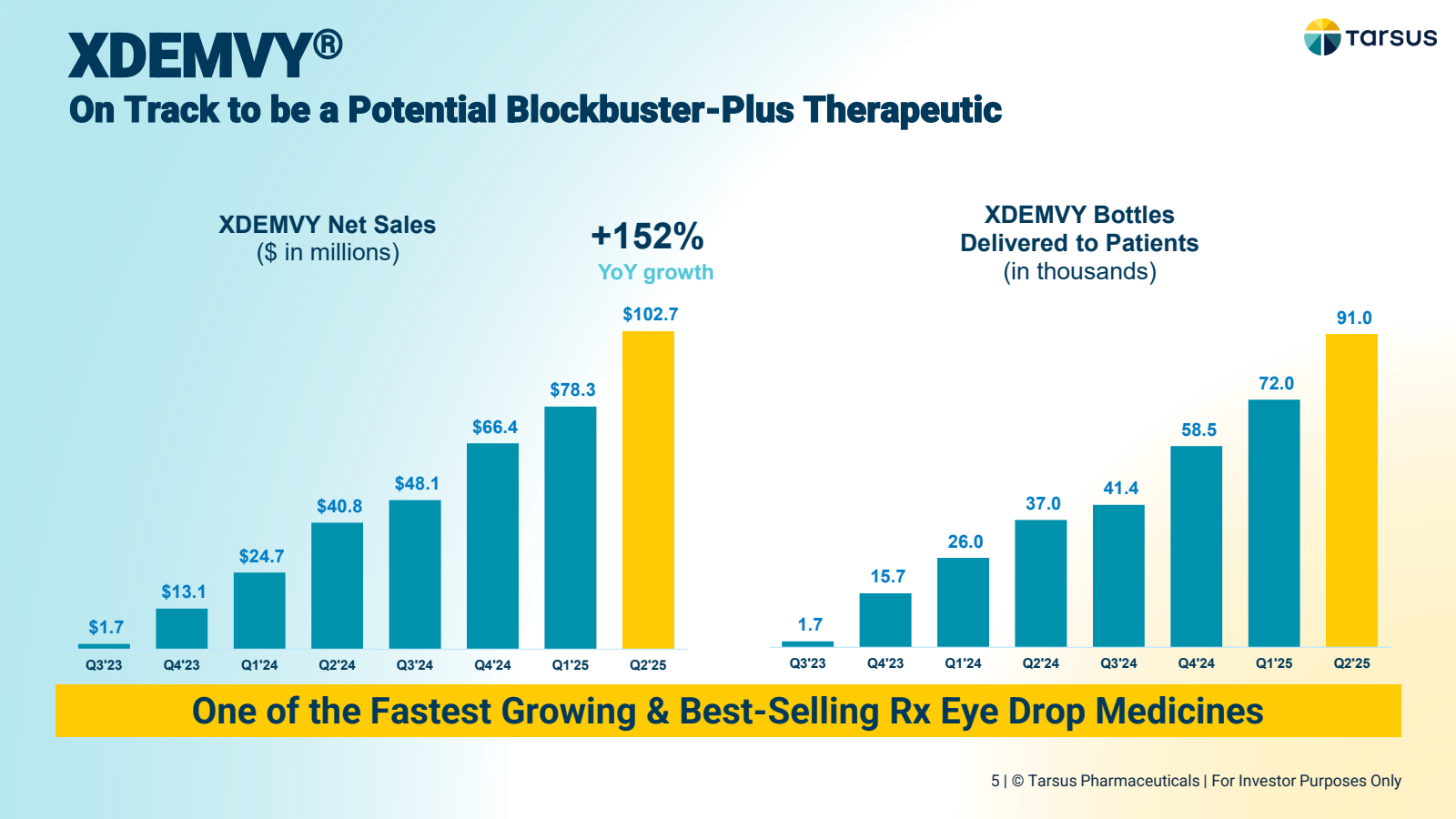 In less than two years, XDEMVY has gone from launch to blockbuster-plus potential, positioning Tarsus as one of the most dominant players in the ophthalmic therapeutics space.