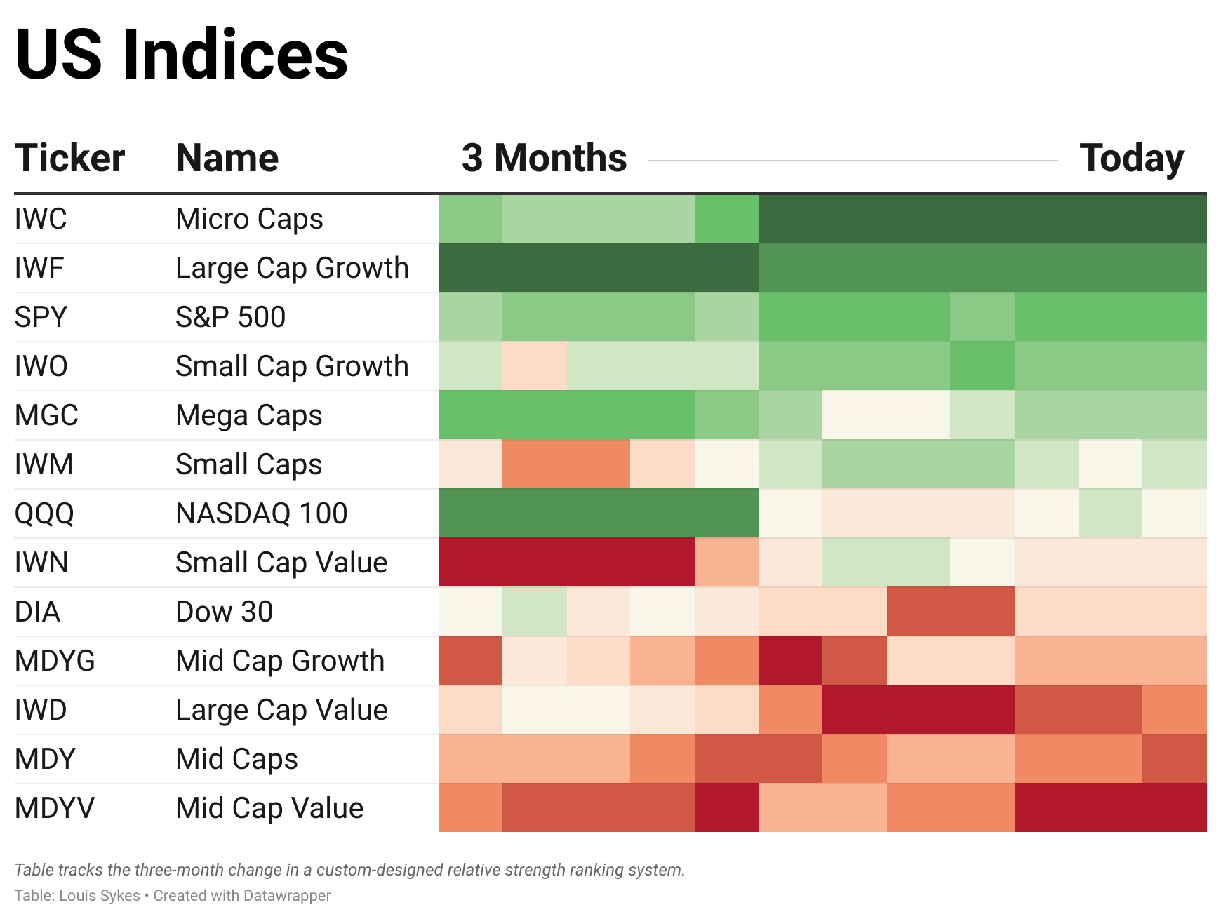 Moving over to our U.S. Index universe, the same theme keeps emerging: breadth. Market leadership is broadening out in a way we haven’t seen in years. Virtually everything is working right now.