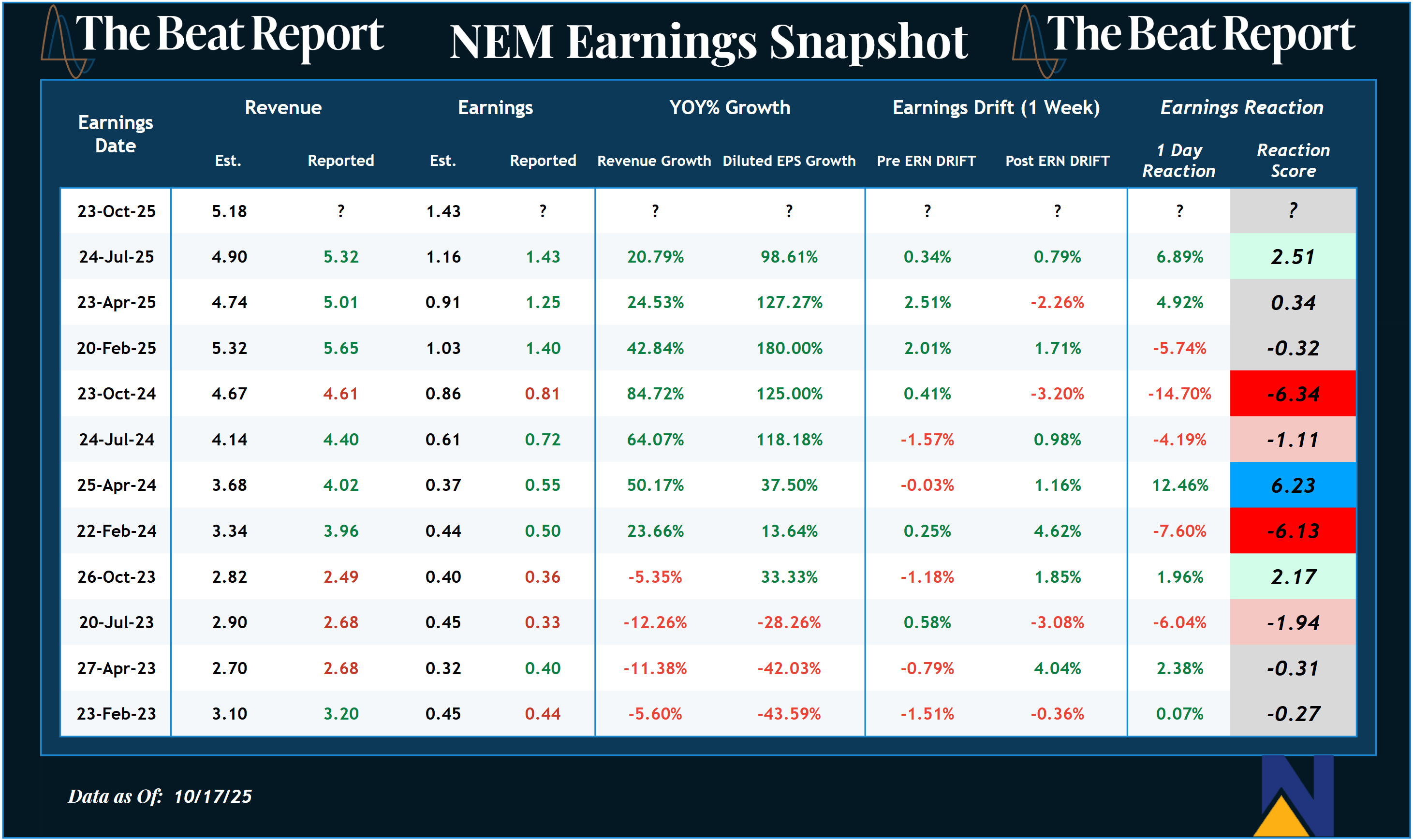 Here's the setup in NEM ahead of Thursday's earnings report π