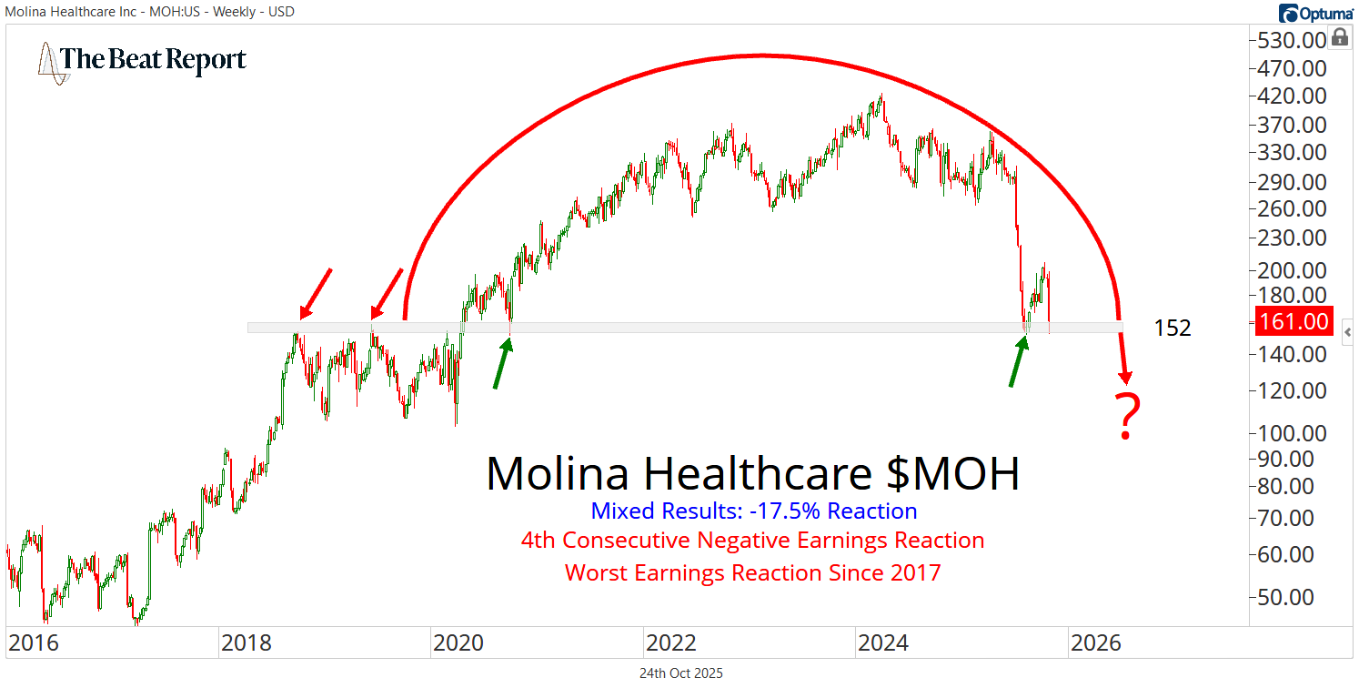 At the bottom of Thursday's list was the $8.7B provider of Medicaid and Medicare managed health care services, Molina Healthcare $MOH. The company reported mixed results and suffered a -6.03 reaction score.
