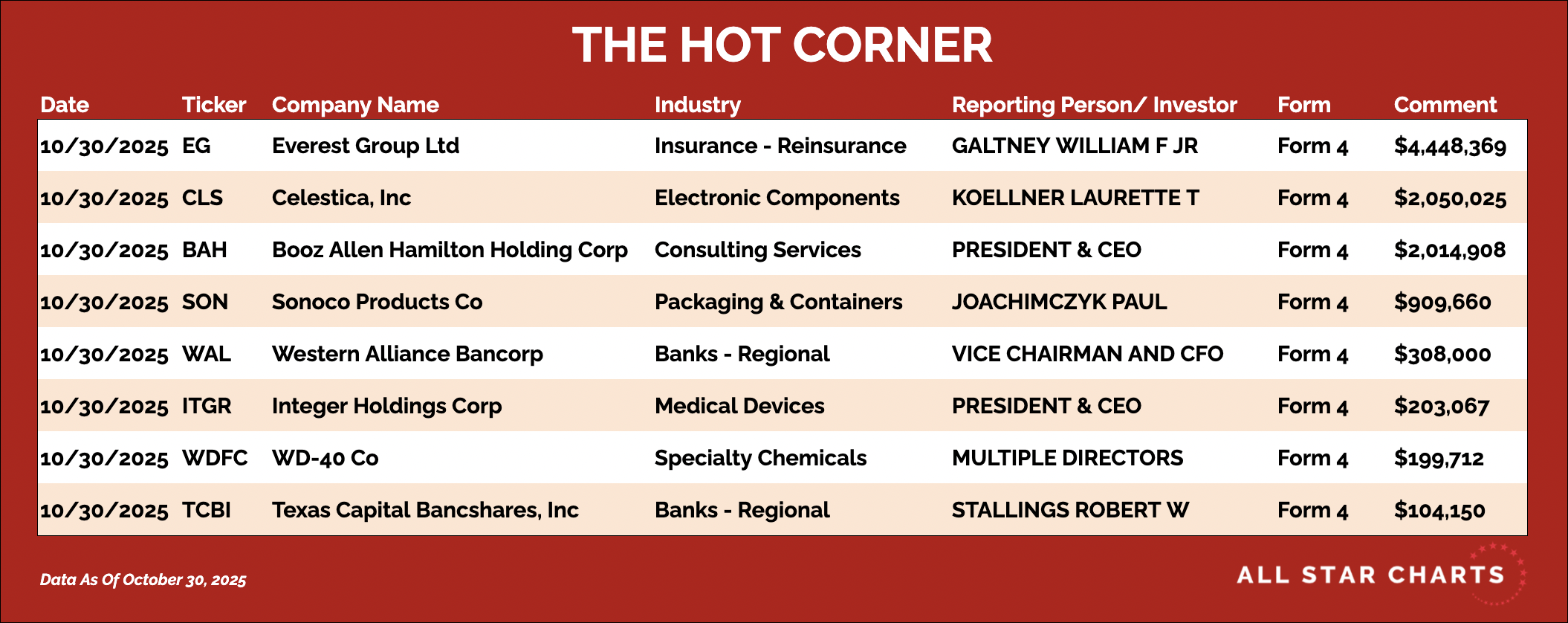 Have a great weekend. We'll be back Monday with more insider activity.