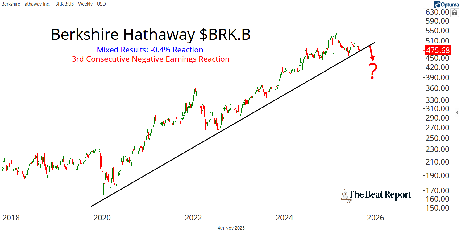 BRK.B suffered its third consecutive negative earnings reaction 🐻