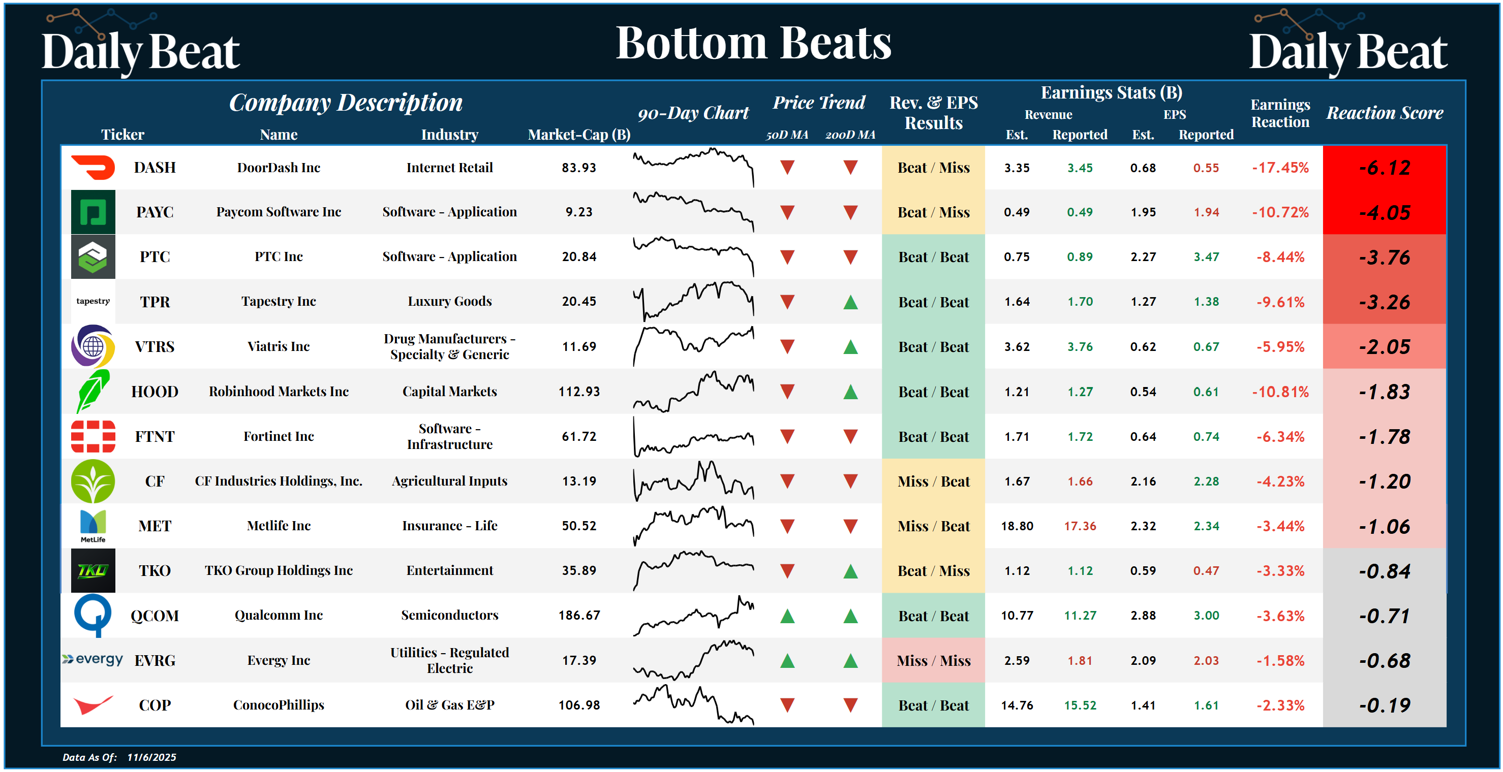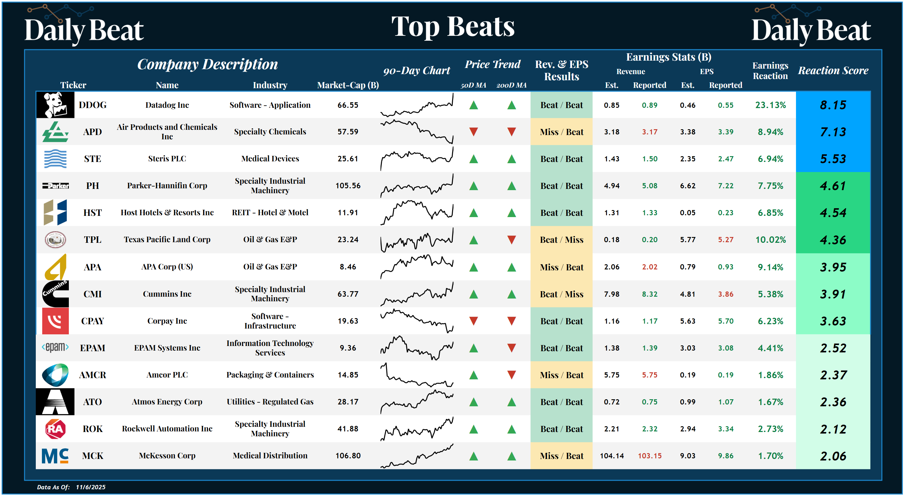 In the Daily Beat, we spotlight the most important S&P 500 earnings moves from the prior session - the winners, the losers, and the reactions that reveal what really matters to the market right now.