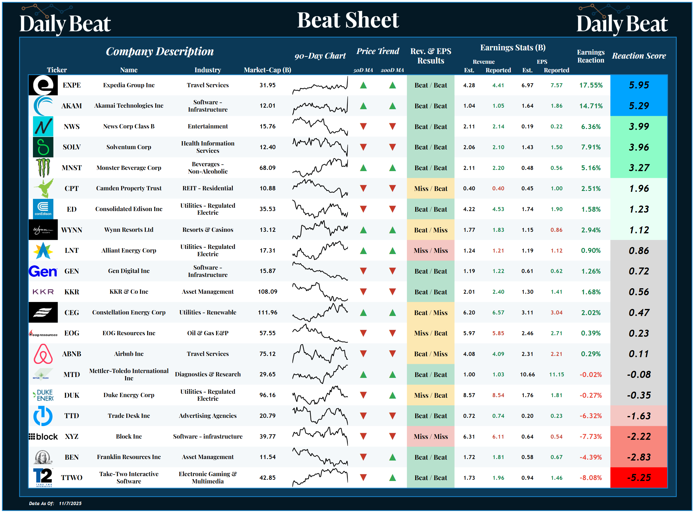 In the Daily Beat, we spotlight the most important S&P 500 earnings moves from the prior session - the winners, the losers, and the reactions that reveal what really matters to the market right now.