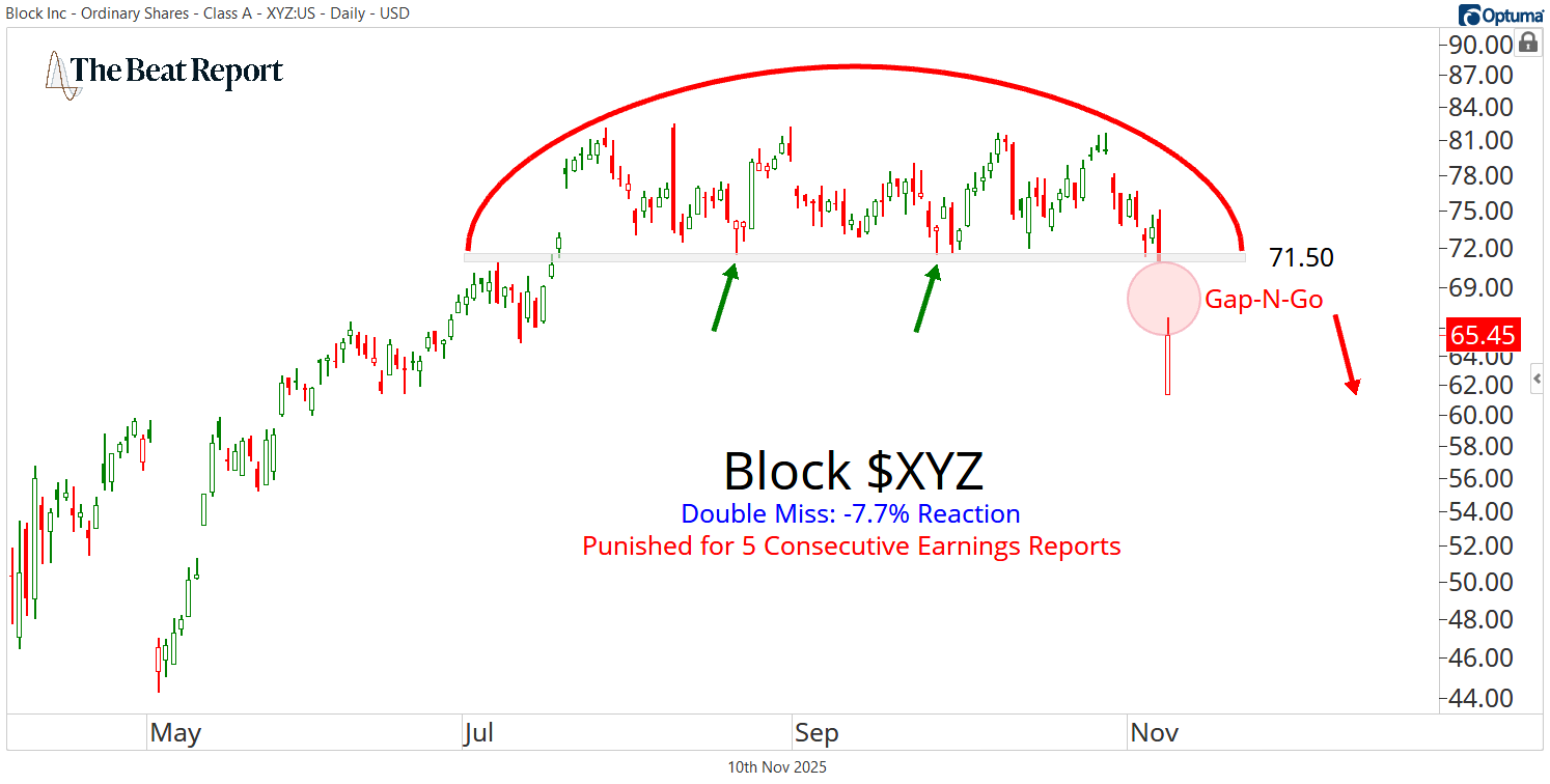 XYZ suffered its fifth consecutive negative earnings reaction 🐻
