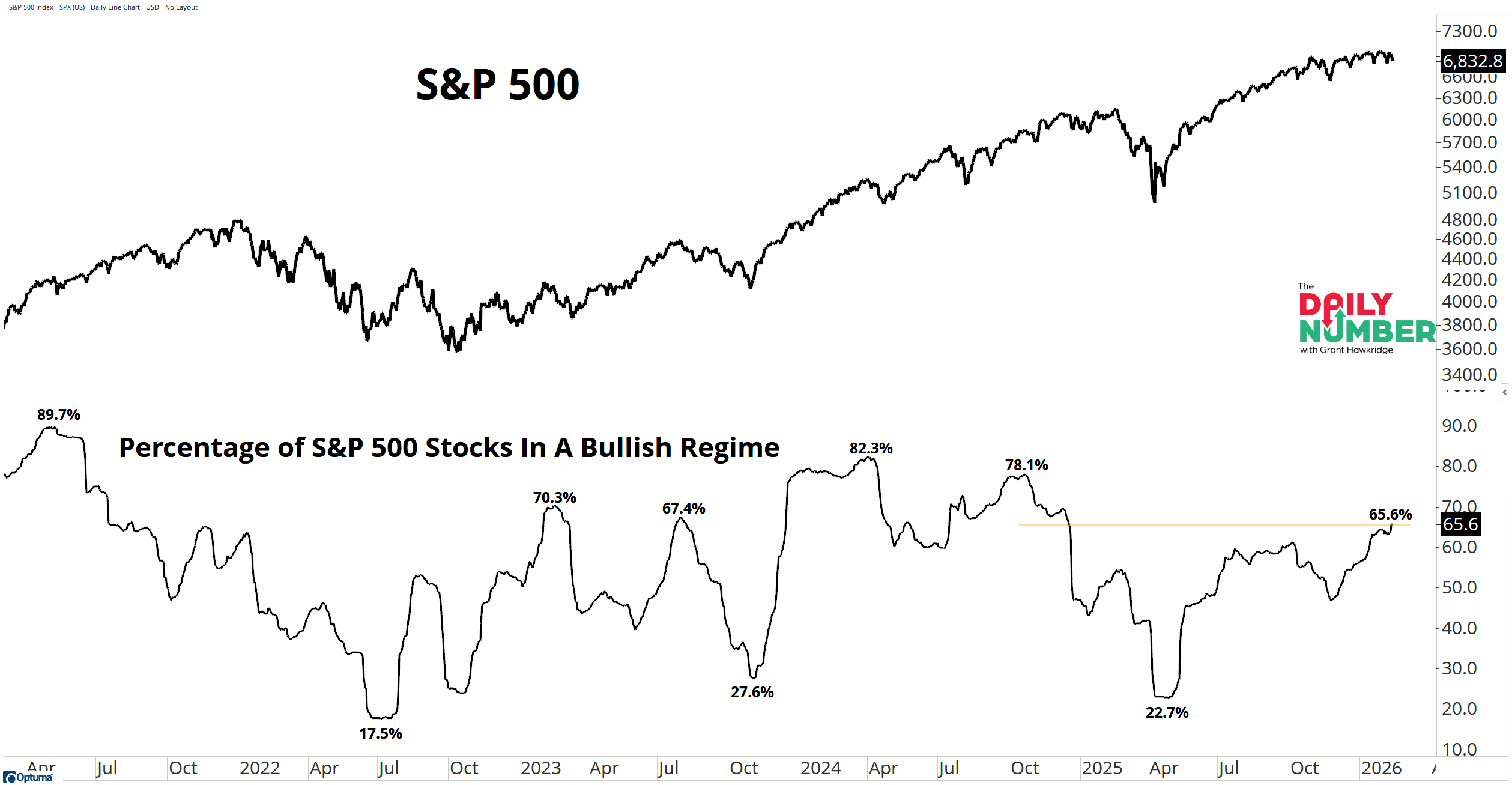 65.6% of S&P 500 stocks are in a bullish RSI regime.